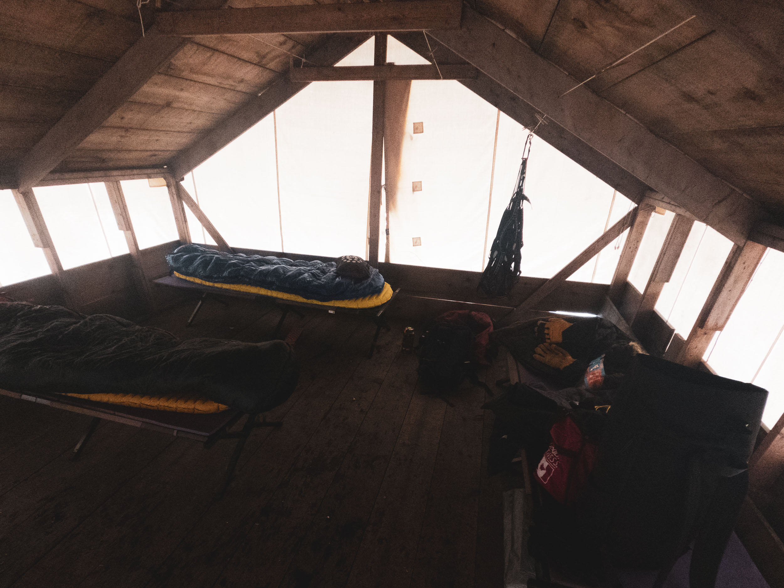 Arriving at a camp already set up is a somewhat alien concept to me and something I could get used to. Being able to saunter into a large, warm canvas tent to unpack rather than setting up a tiny cold backcountry tent is a new experience. The guides tell us that they have all the camp chores covered and that our duty is to relax and shower the dogs in endless affection.